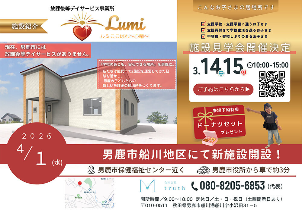 2026年4月1日 男鹿市船川地区にて新施設開設!